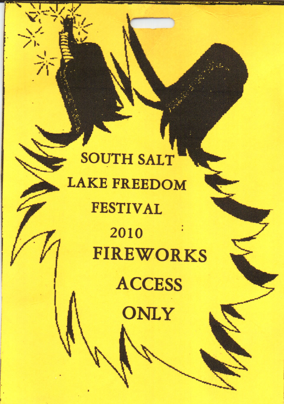 This year South Salt Lake had it’s huge fireworks display on Friday, on the football field of the high school I used to teach at. Now, this was kind of cool, because since the school was closed and my old principal is still overseeing the facility we got “Fireworks Access Only” passes. That meant we got to sit on the sidelines of the football field, with the fireworks set up in the middle of the field, during the show. Most awesome fireworks experience ever! We could see them from when they left the ground until they exploded in the sky right above us. We could feel their boom as they were launched, and then when they exploded. We had to dodge the burning embers as they floated to the ground around us. Actually, for the most part that wasn’t a problem, until the wind shifted near the end of the show and started blowing them