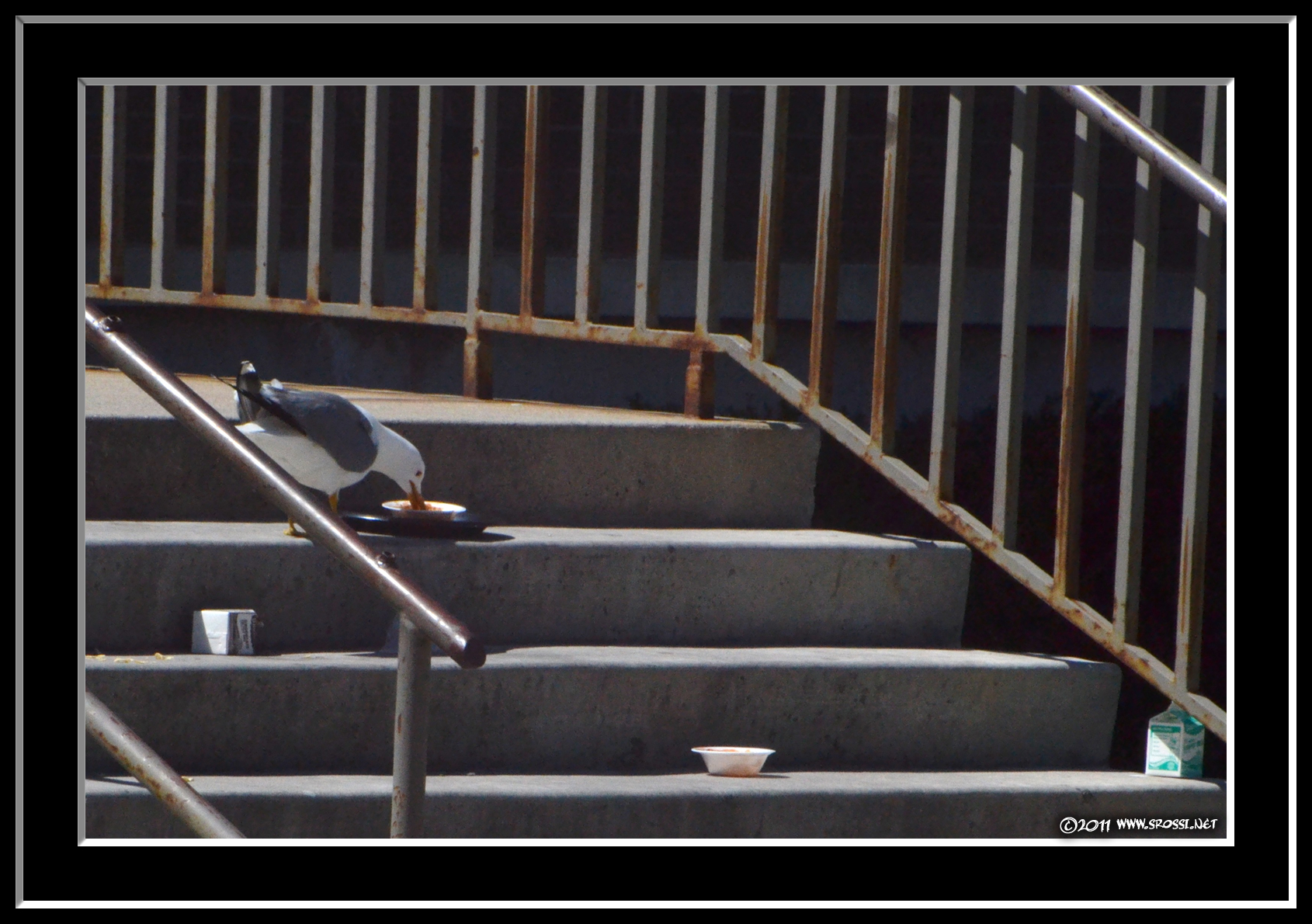Mustang - Wish I could take credit for that one, but one of my coworkers sent that back to me. I know a lot of people don't like seagulls, but I like taking pictures of them, and we have a lot here in land-locked Utah. . Karen - Thanks. Oddly enough, that was the only one that was around having lunch. You would think with the mess those kids left there would be a bunch. Ah well, at least s/he was well fed. . Writer - I've never had one dive bomb me, but I have had wasps go kamikaze at my forehead. And I was only 8 at the time. . Alexia - Sounds like a nice campus, with some extras that allow the students to get a little more than just the 3 Rs. I had thought about cropping out the rusty railings, but now I'm glad I didn't.