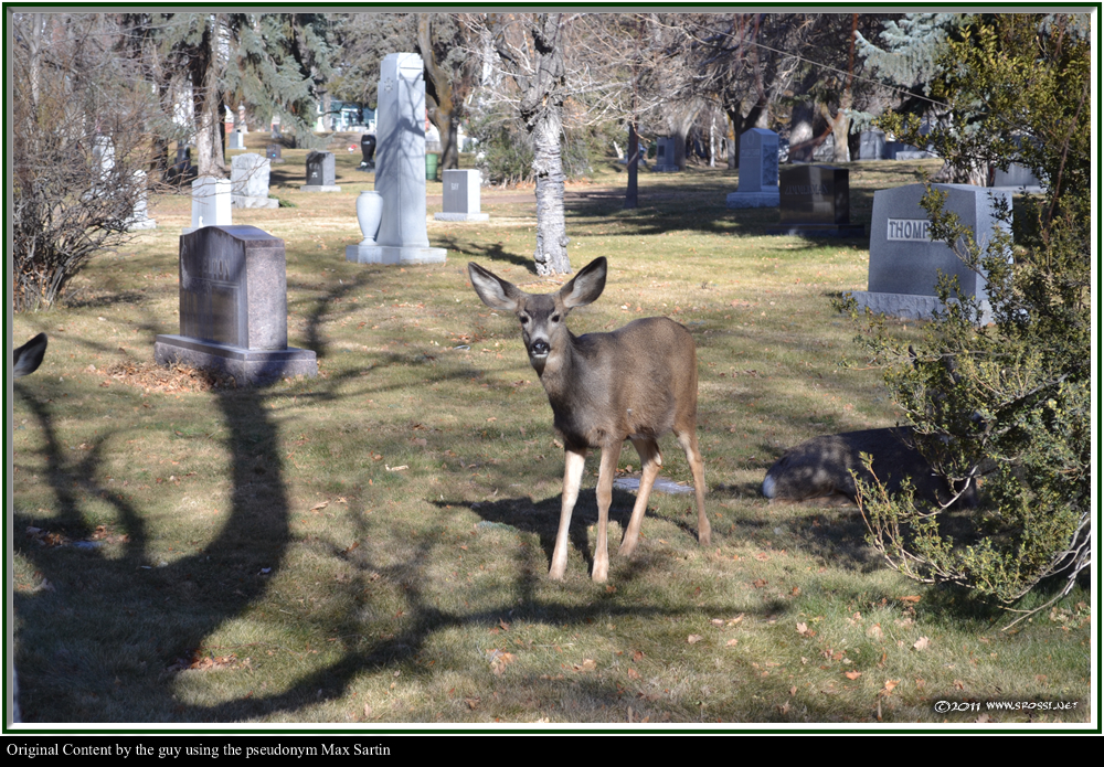 At one point Writer sat down in front of a tombstone to watch a deer that had laid down. When I asked her what she was doing, se told me “Having a conversation with this deer”.