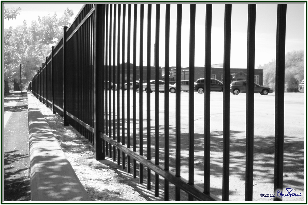 But for this set, I’m going to with a wrought iron fence around the parking lot at an old elementary school, which is now offices for Westminster College,